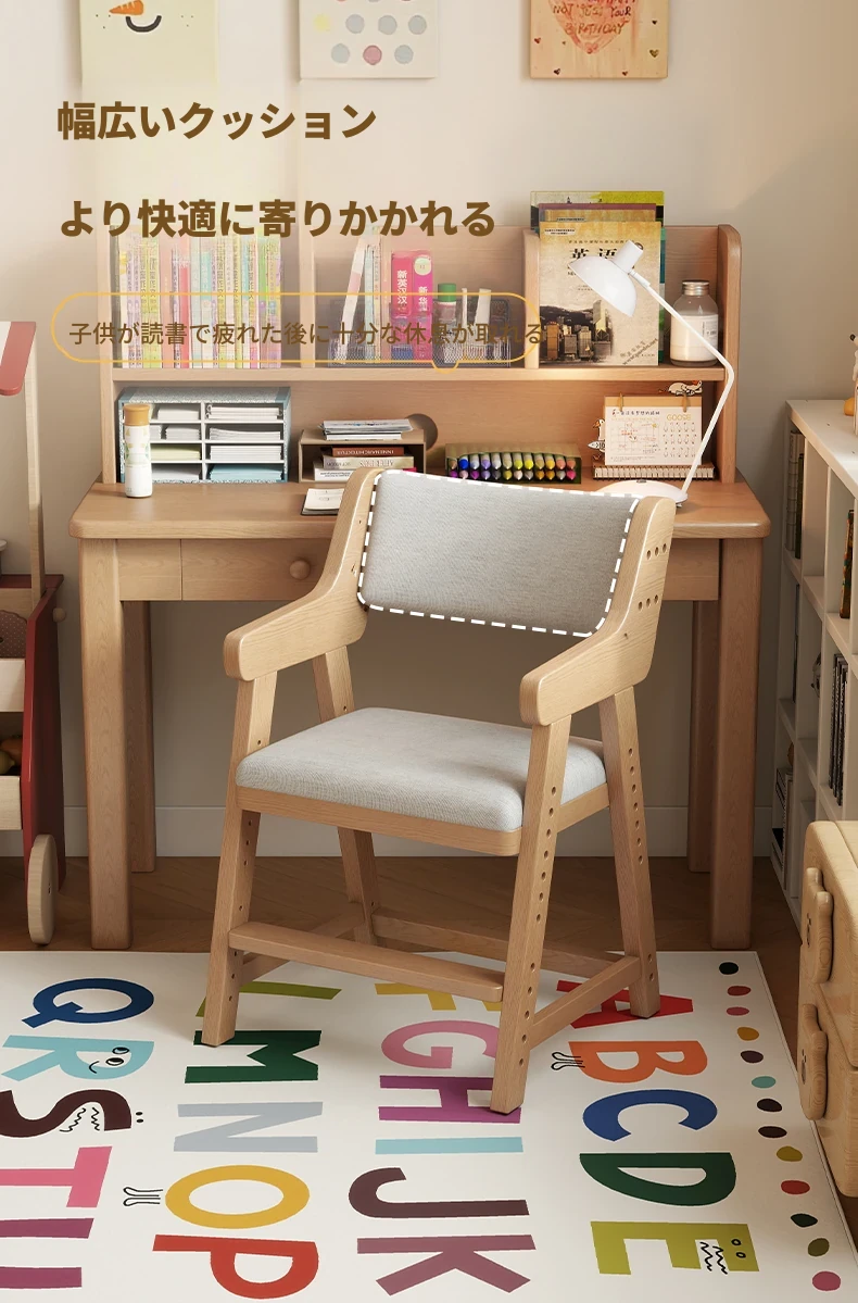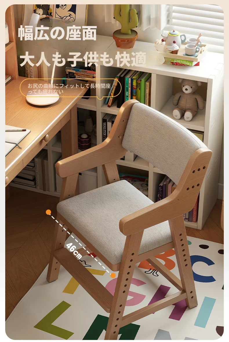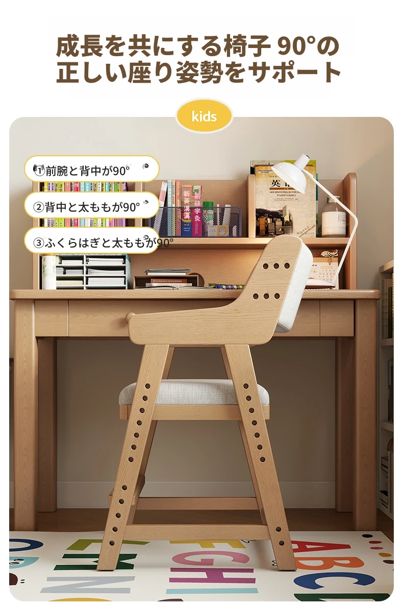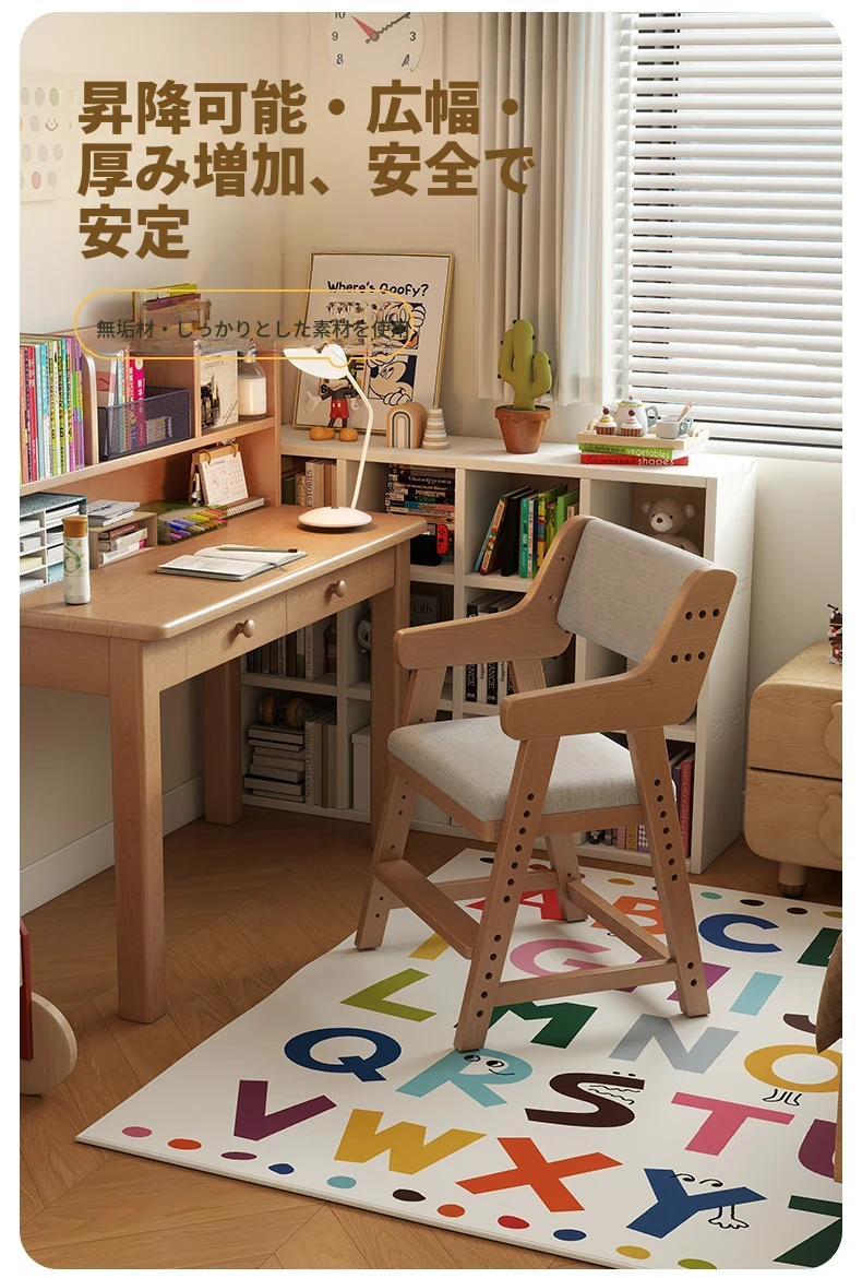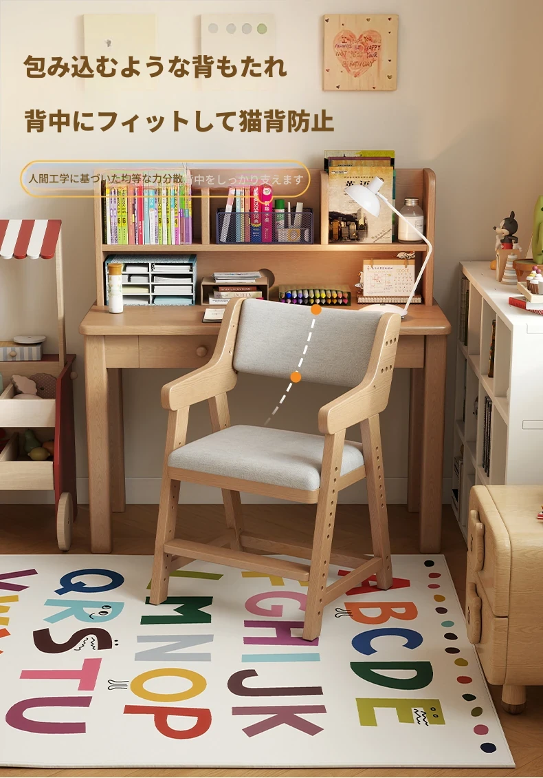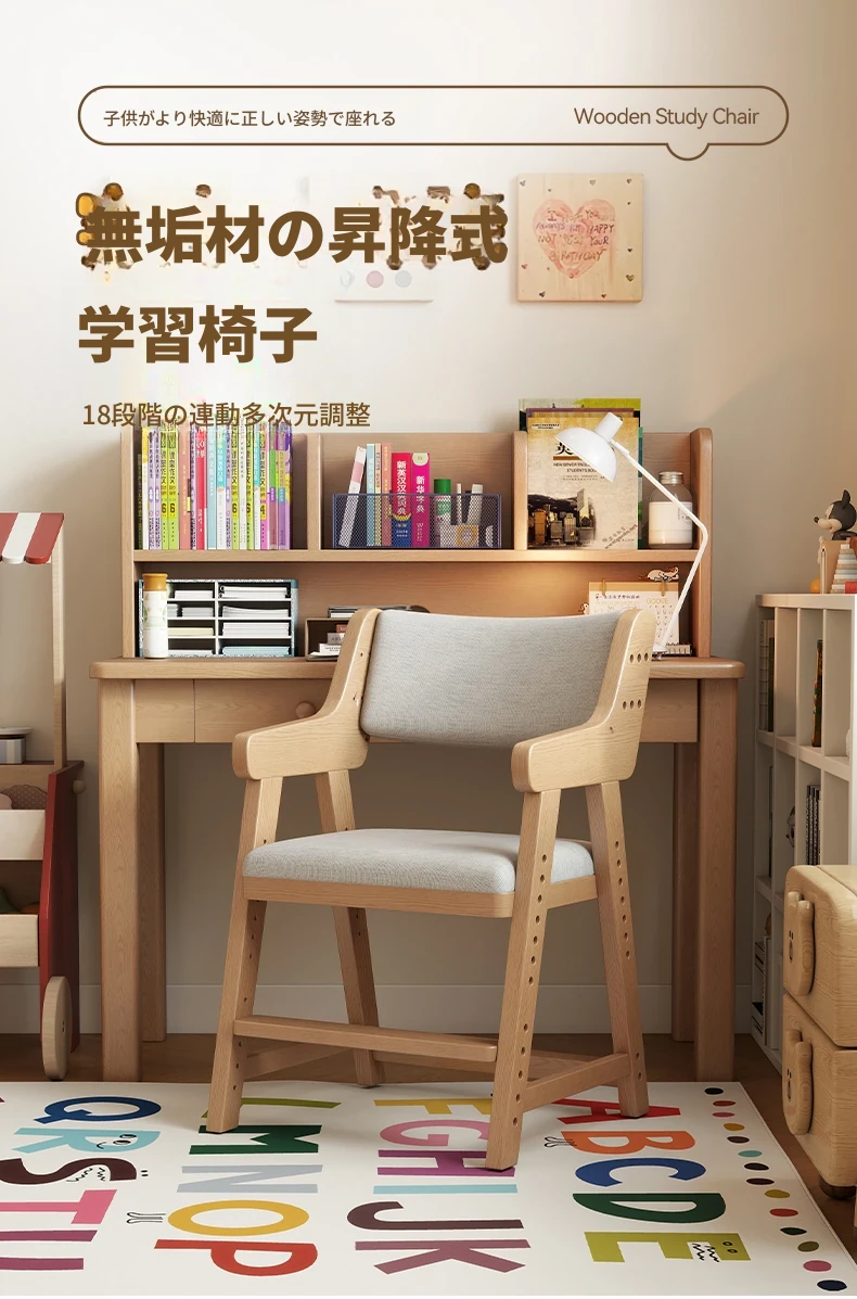 子供用実木学習椅子|姿勢矯正・快適な書き心地|昇降式・背もたれ調節可能|家庭用デスクチェアに最適!