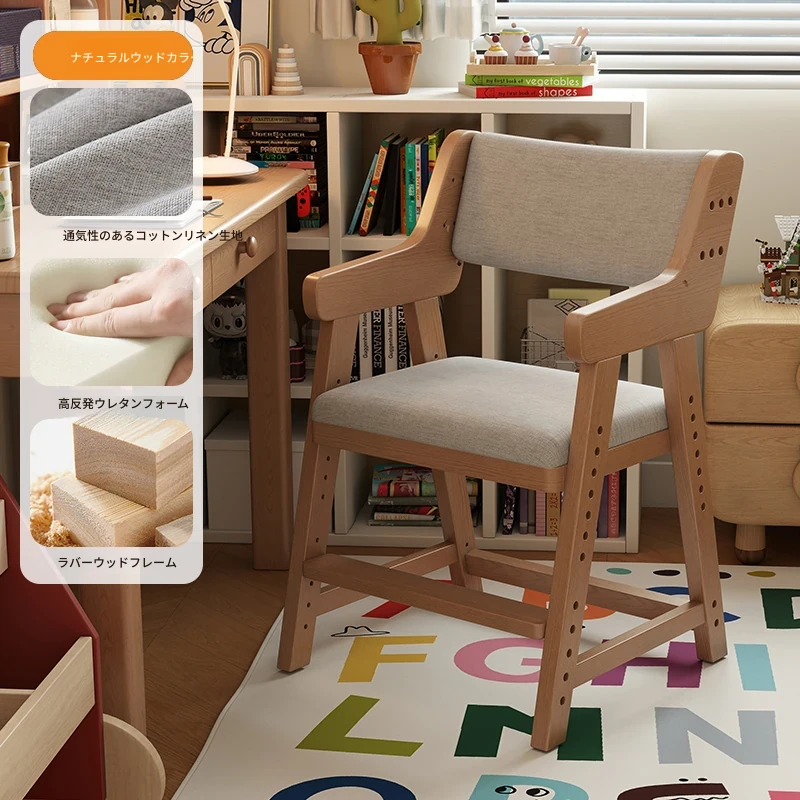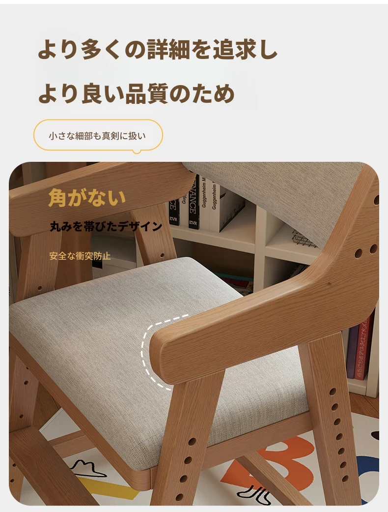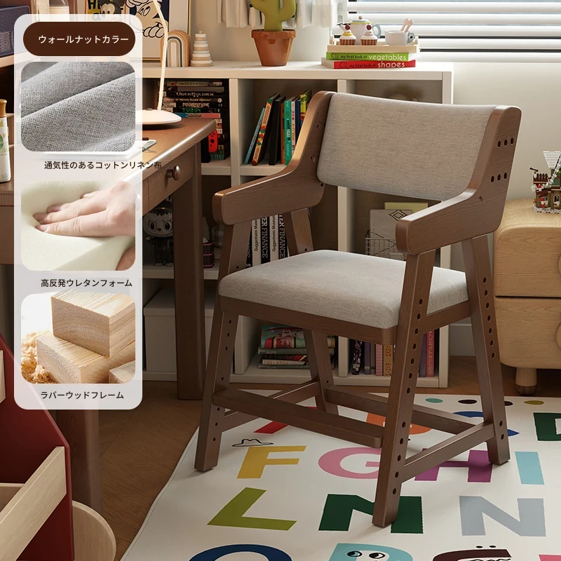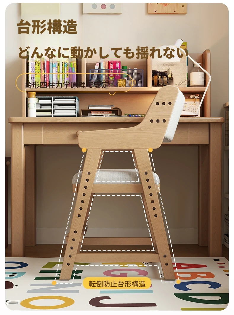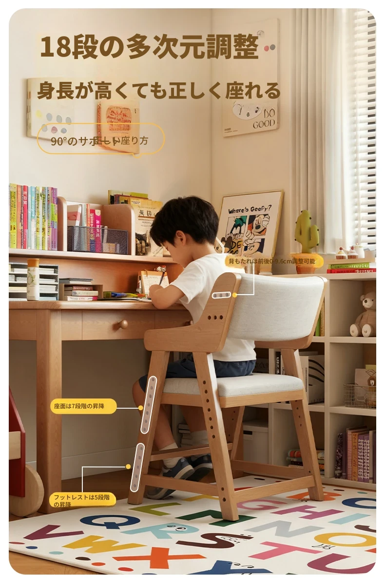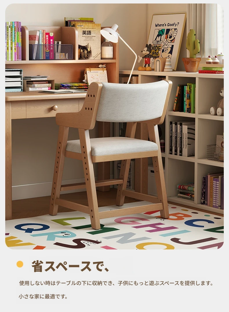 子供用実木学習椅子|姿勢矯正・快適な書き心地|昇降式・背もたれ調節可能|家庭用デスクチェアに最適!
