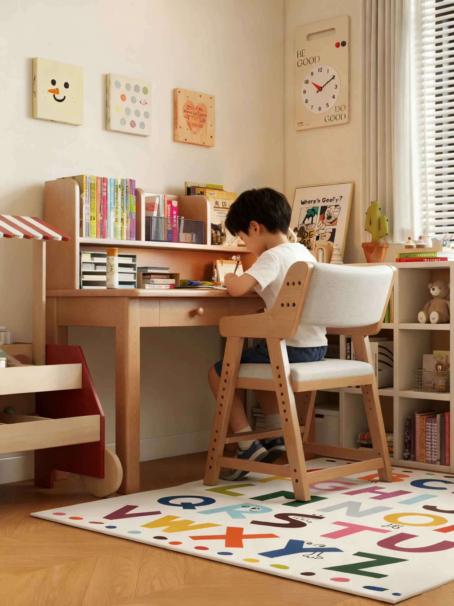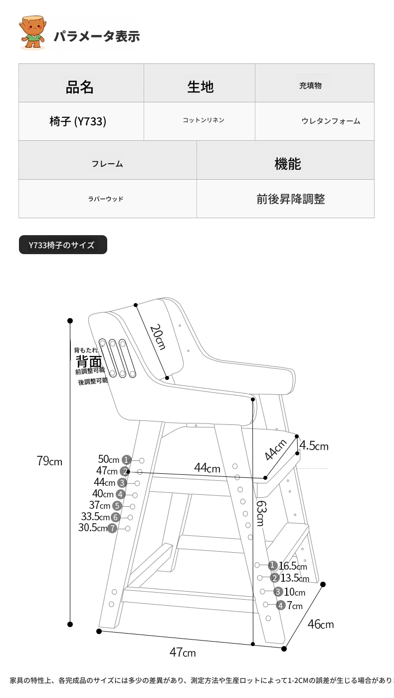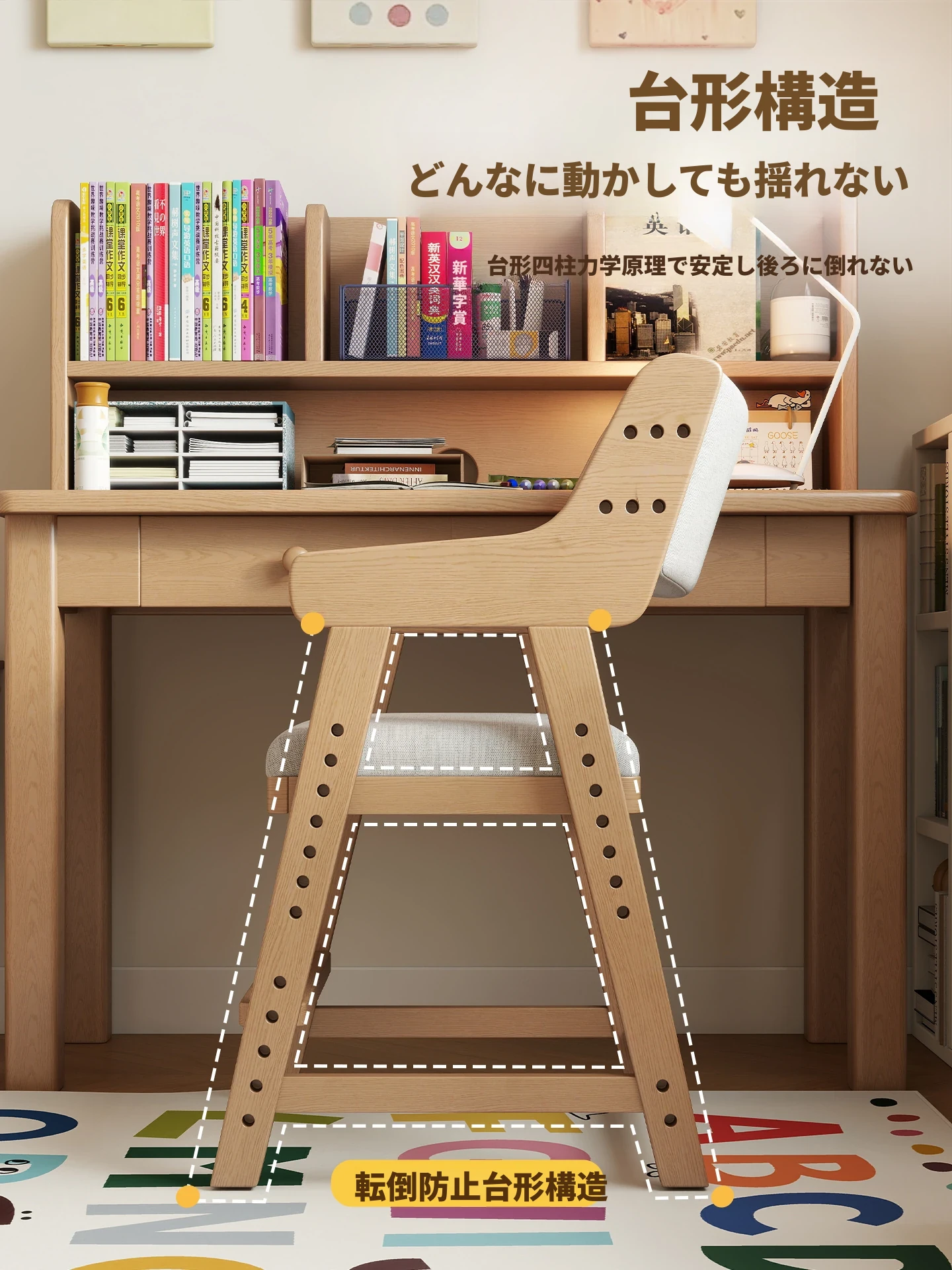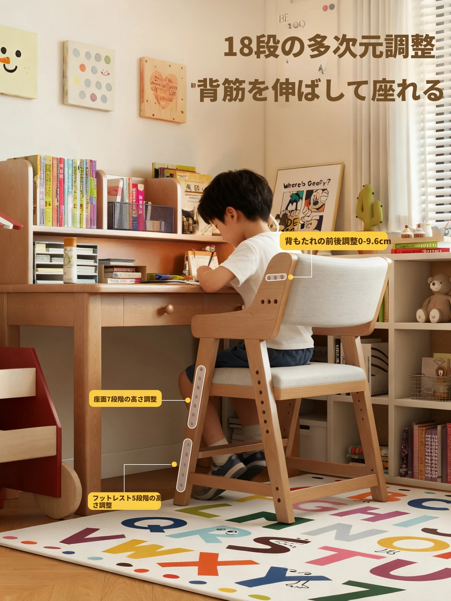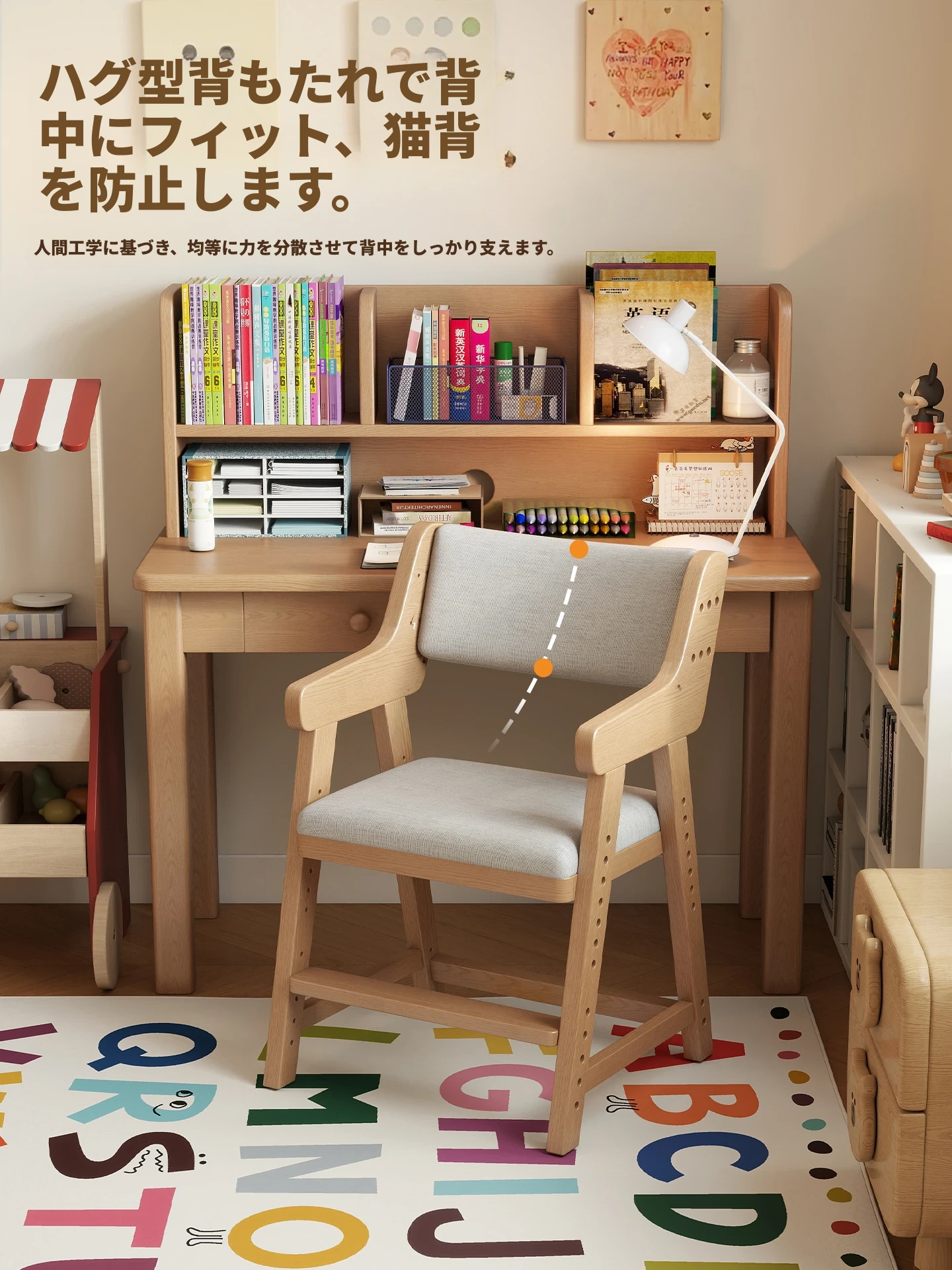 子供用実木学習椅子|姿勢矯正・快適な書き心地|昇降式・背もたれ調節可能|家庭用デスクチェアに最適!